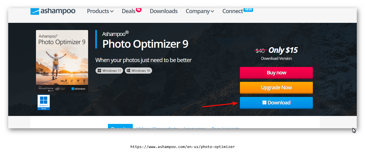 - Скачайте Ashampoo Photo Optimizer с официального сайта.