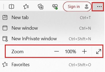 - Нажмите три точки в правом верхнем углу и используйте кнопки Масштаб в меню.
