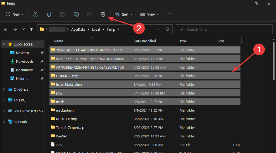 - Нажмите Win + R, введите %temp% и нажмите «ОК».