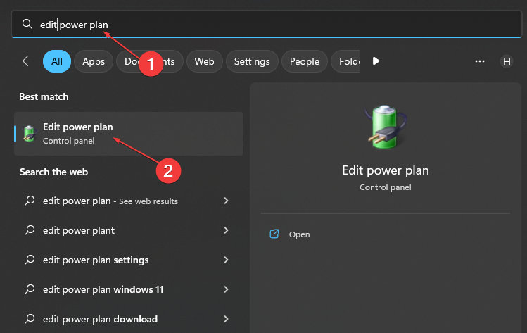- Нажмите Windows + S, введите «Изменить схему электропитания» (Edit power plan) и откройте результат.
