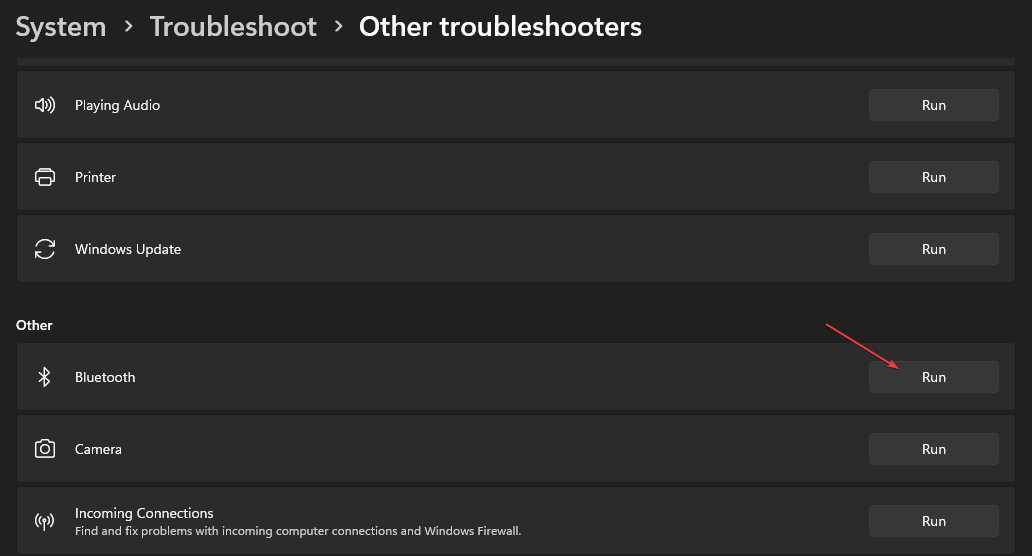- Найдите «Bluetooth» и нажмите «Запустить».
