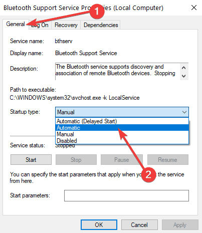 - Службы: перезапустите службу Bluetooth Support Service и установите автозапуск.
