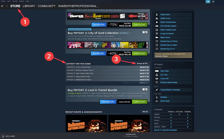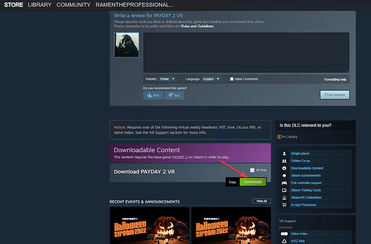 - Откройте страницу Payday 2 в магазине Steam.