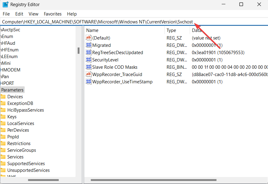 Computer\HKEY_LOCAL_MACHINE\SOFTWARE\Microsoft\Windows NT\CurrentVersion\Svchost