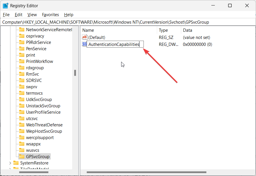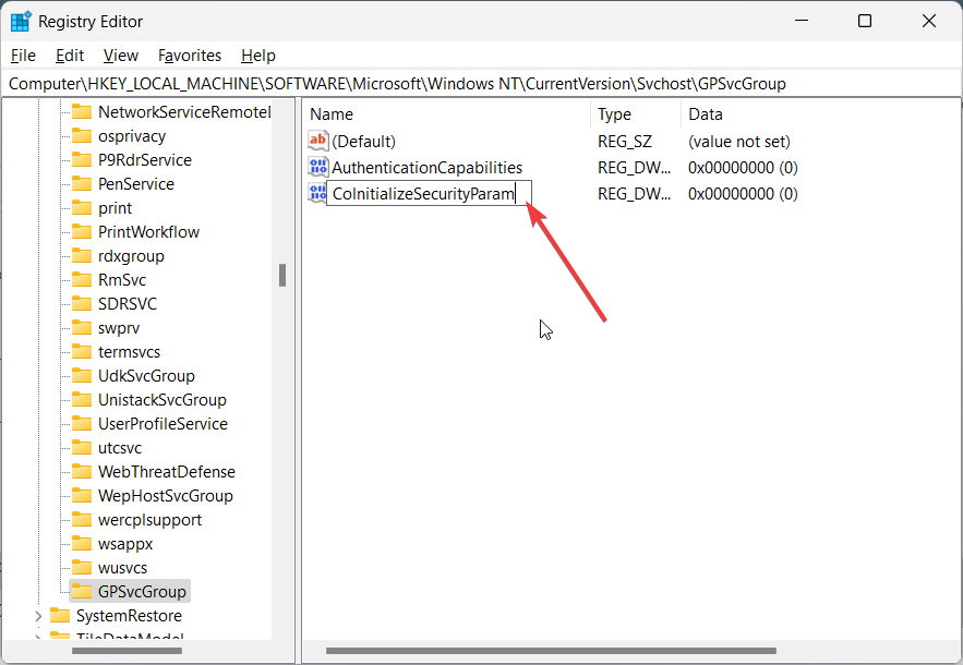 4. Исправьте параметры реестра GPSVC