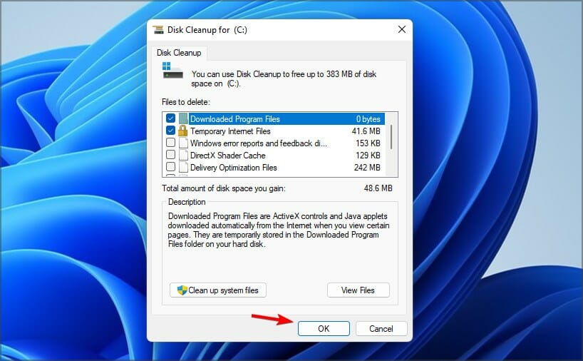 - Отметьте типы файлов для удаления и нажмите «ОК».