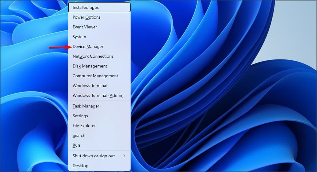 - Нажмите Win + X и выберите «Диспетчер устройств».
