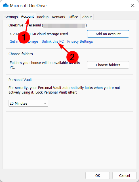 5. Отключите синхронизацию с OneDrive (отвязка учётной записи OneDrive)