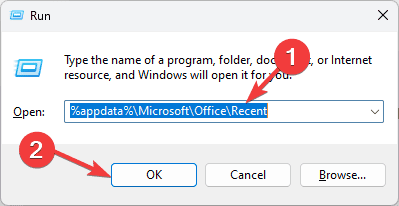 %appdata%\Microsoft\Office\Recentи нажмите Enter.