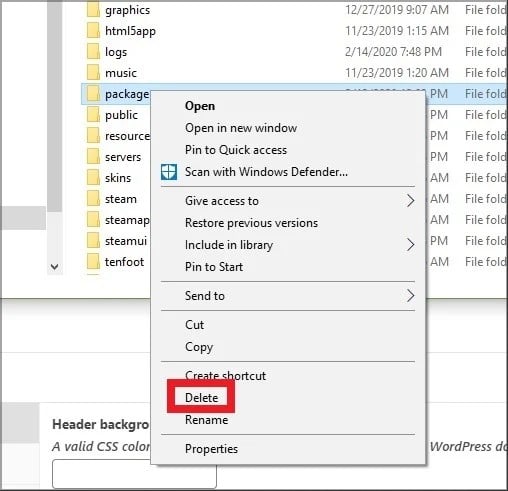 4. Удалите папку Package в каталоге Steam