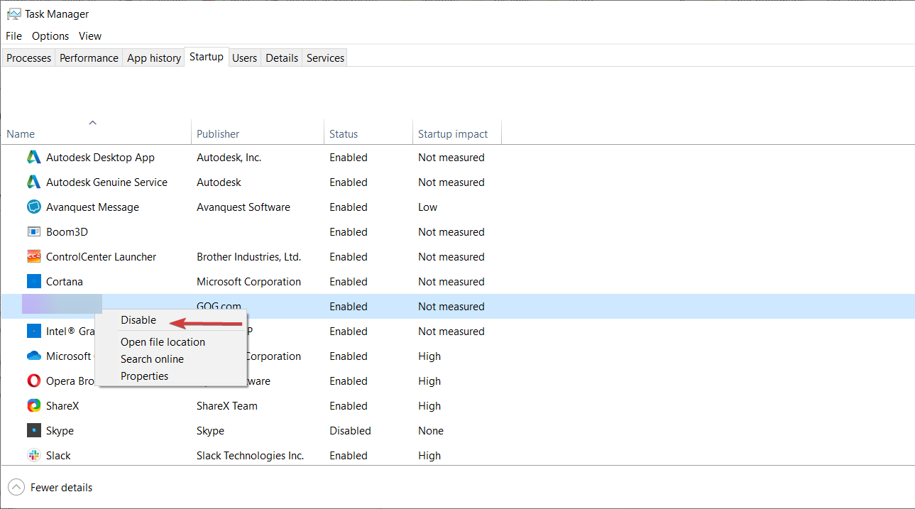 - Перейдите на вкладку «Автозагрузка», найдите VPN/прокси и отключите его, чтобы он не запускался автоматически.