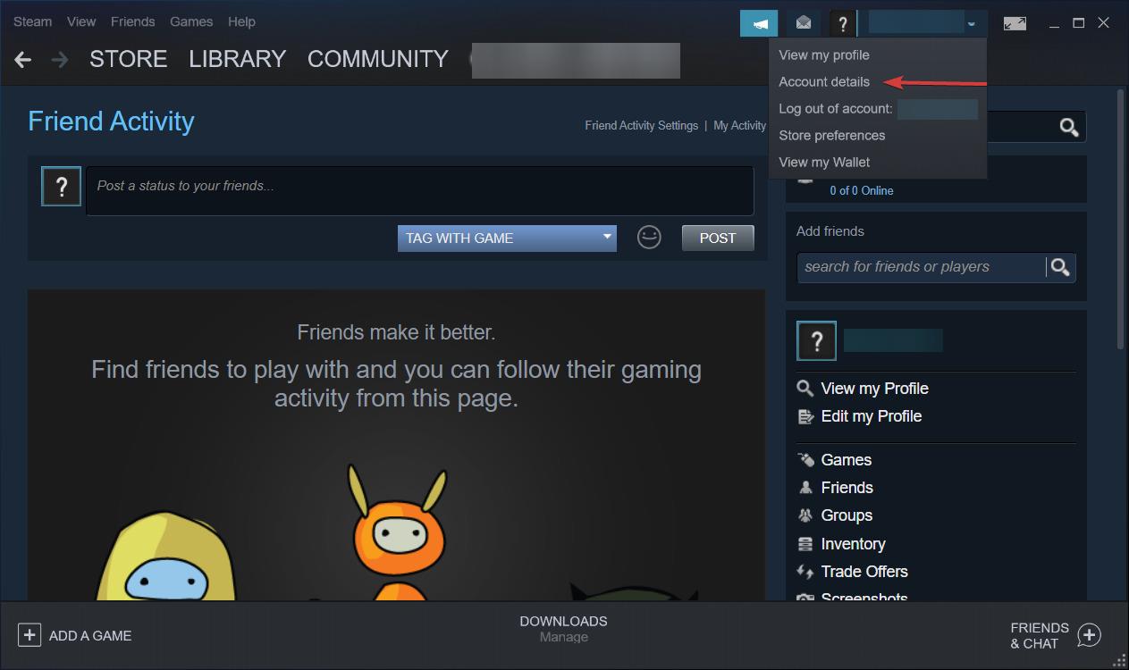 - Откройте клиент Steam и нажмите на имя своего аккаунта.