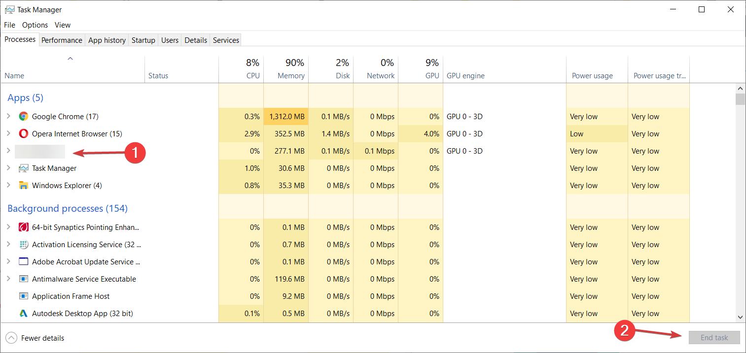 - На вкладке «Процессы» завершите процесс VPN или прокси-клиента (например, Private Internet Access, OpenVPN, WireGuard и т. п.).