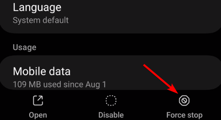 - Нажмите Принудительно остановить, затем откройте приложение снова.