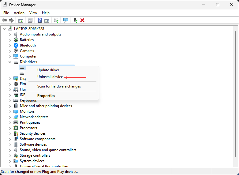 - Если обновление не помогло, в том же меню выберите “Удалить устройство”, затем перезагрузите ПК — драйвер установится автоматически.