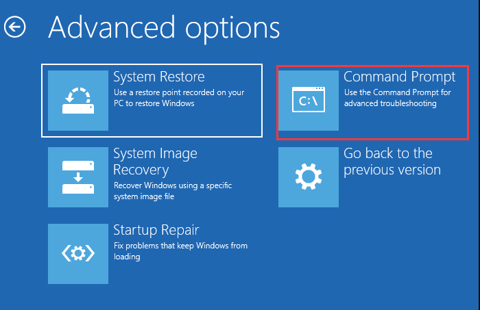 - Затем — “Дополнительные параметры” → “Командная строка”.