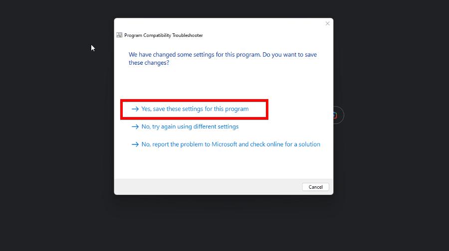 - Если приложение работает корректно, нажмите «Да, сохранить эти параметры для этой программы».
