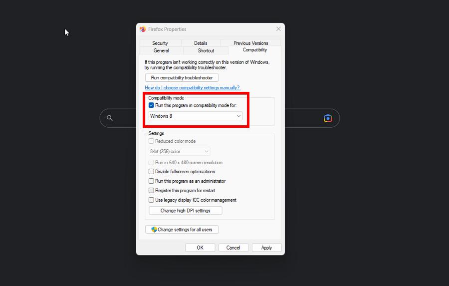 3. Запустите средство устранения неполадок совместимости через свойства приложения