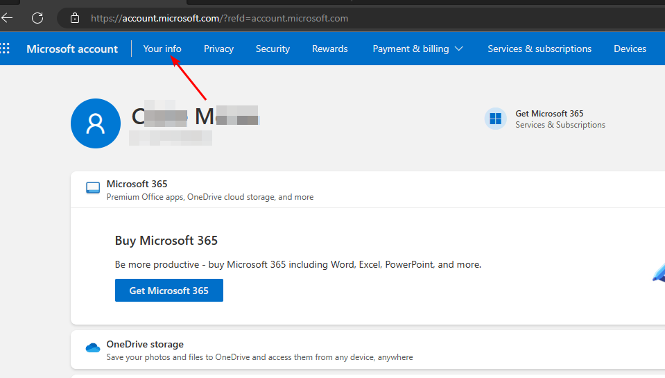 - Перейдите в раздел “Your info” или «Ваши данные».
