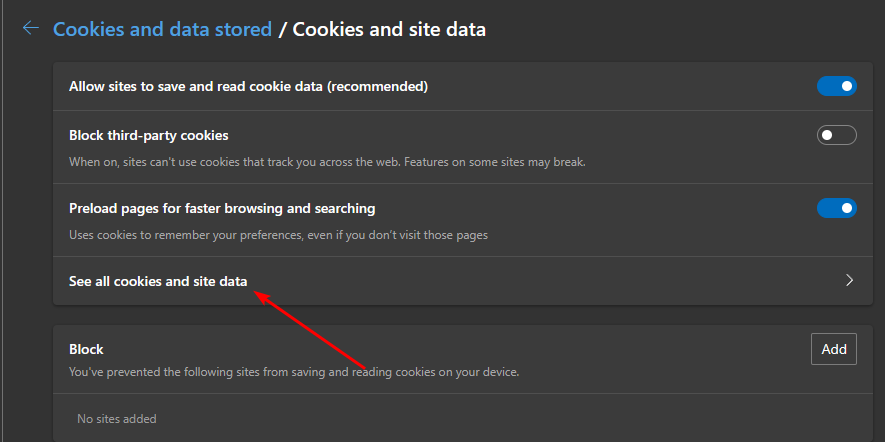 - Разверните «See all cookies and site data» и выберите «Remove all».