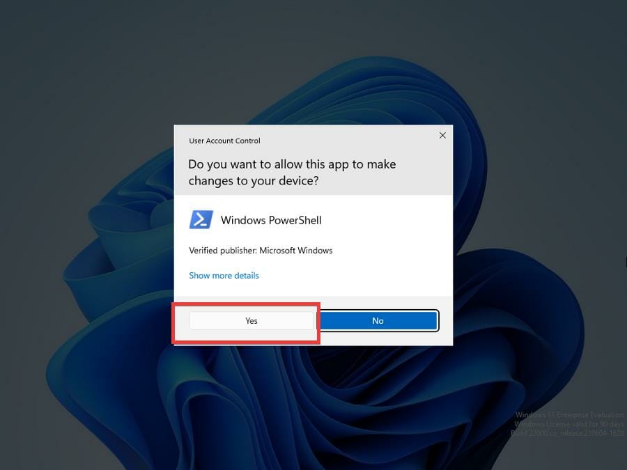 - Подтвердите запрос контроля учётных записей (UAC), выбрав Да.