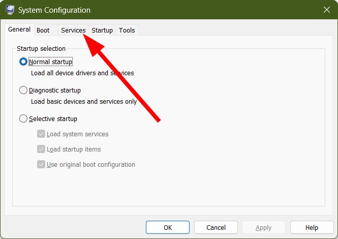 - Нажмите Win + R, введите msconfig и нажмите Enter.