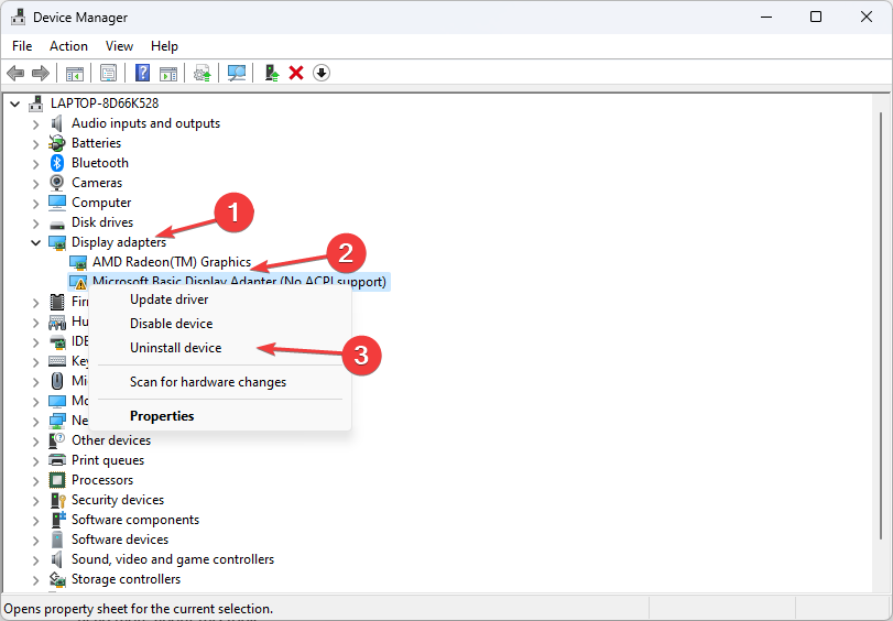 - В «Диспетчере устройств» отображается стандартный VGA‑адаптер или отсутствуют ошибочные драйверы.