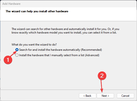 - Выберите «Автоматически искать и установить оборудование» и следуйте инструкциям.