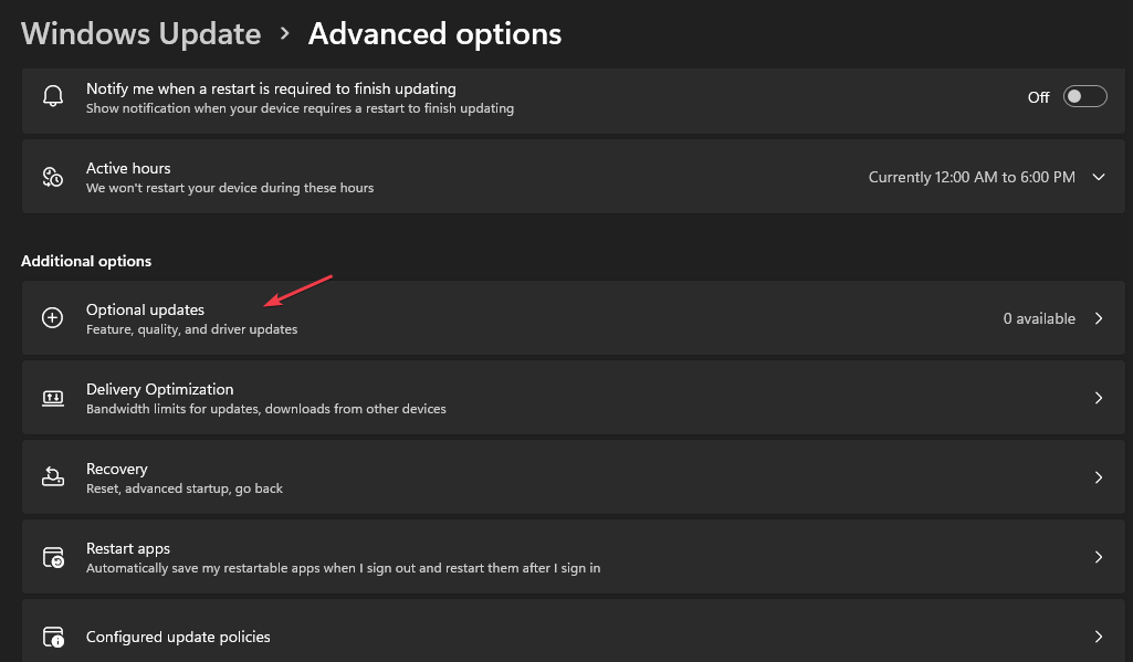 - Нажмите Дополнительные обновления и выберите раздел Обновления драйверов.