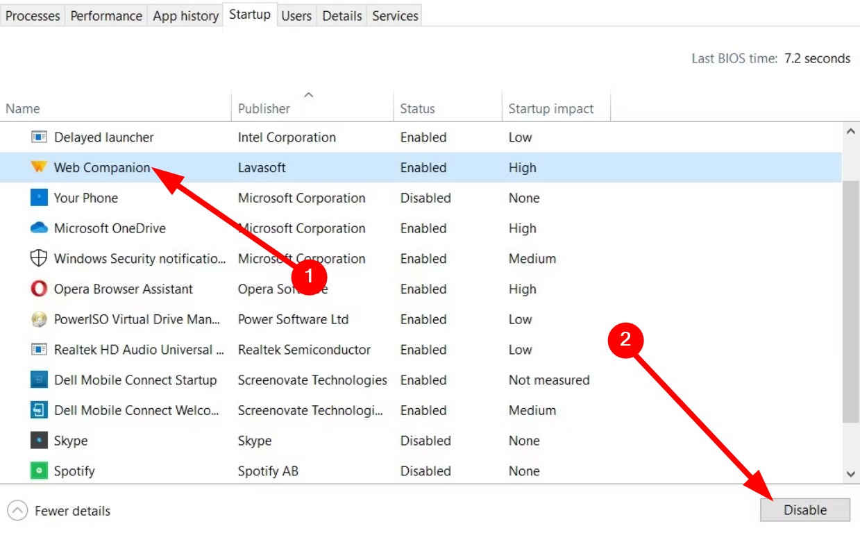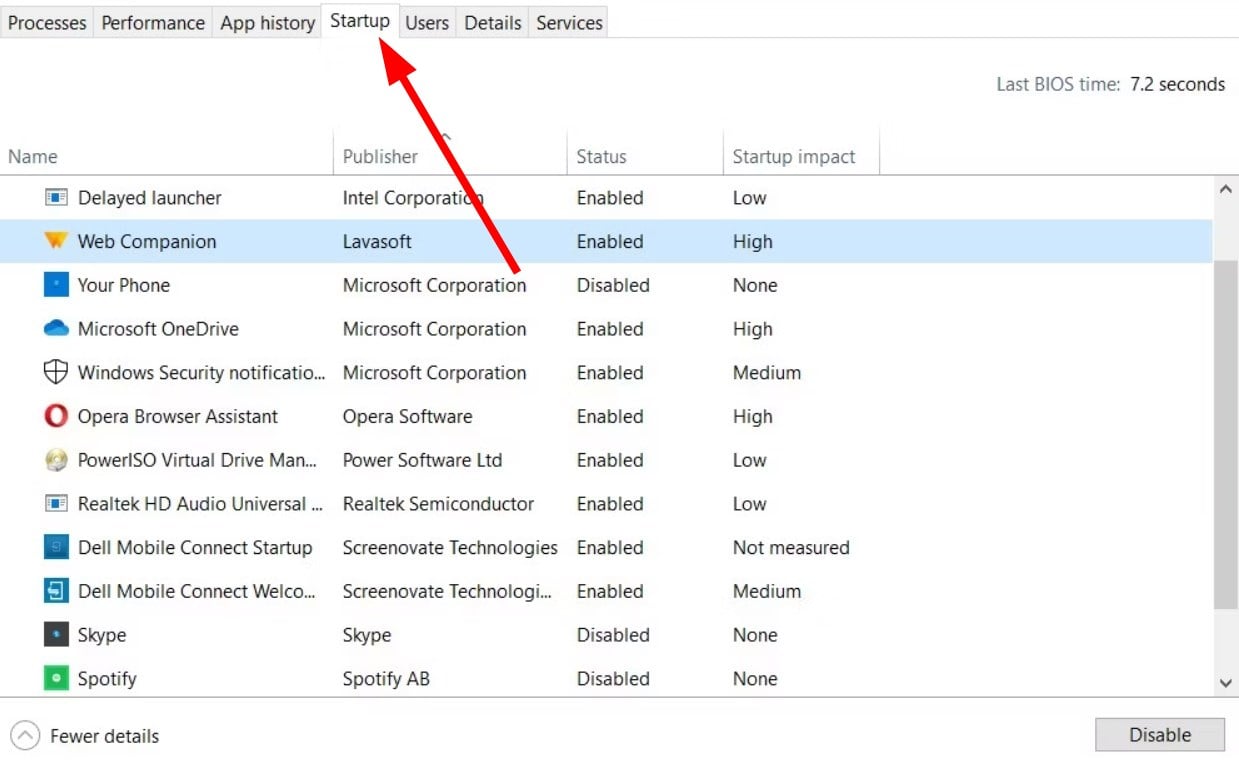 - Во вкладке Автозагрузка Диспетчера задач отключите все элементы, которые включены.