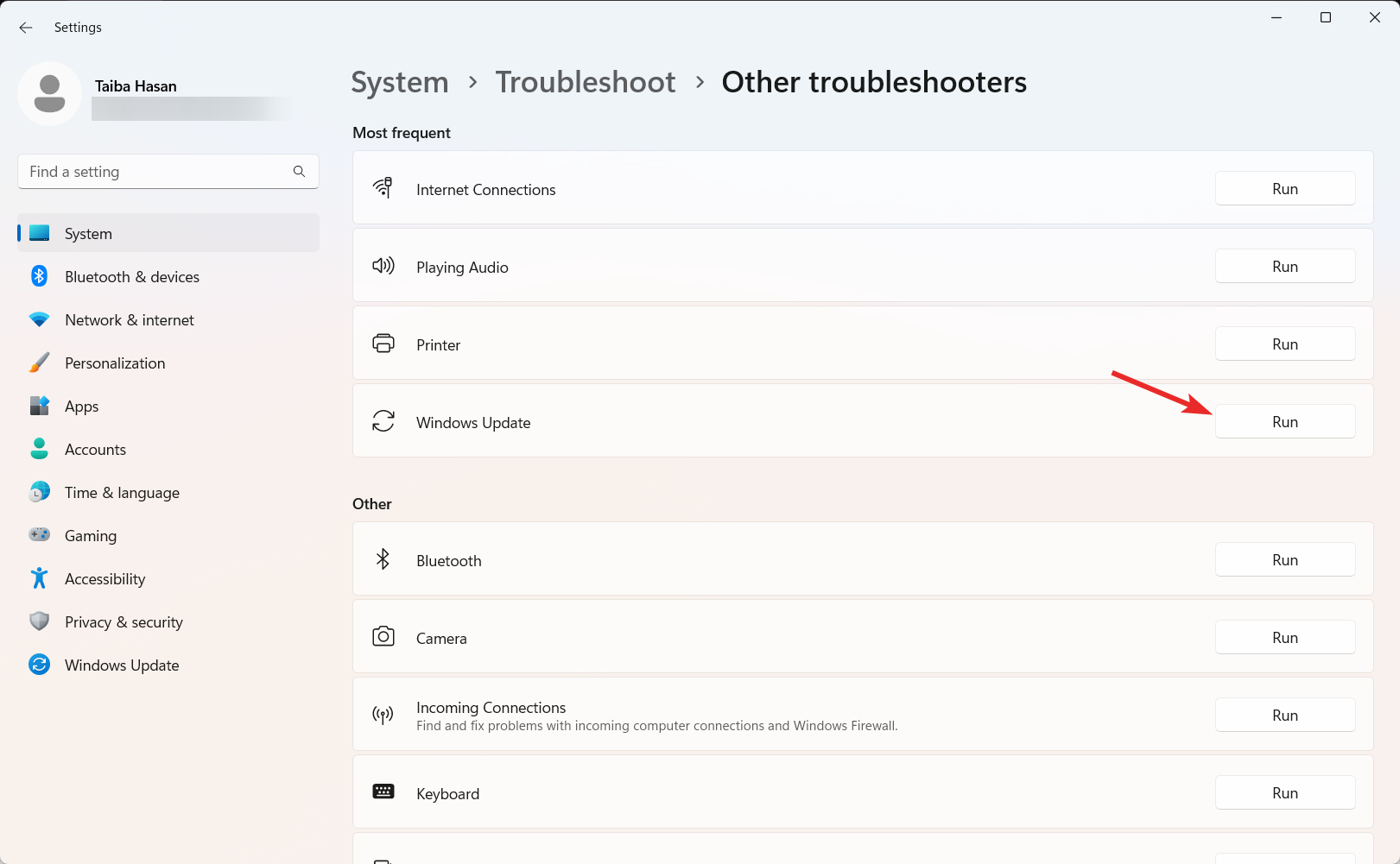 - Запустите средство устранения неполадок Центра обновления Windows (Параметры → Система → Устранение неполадок → Другие средства устранения неполадок → Центр обновления Windows).