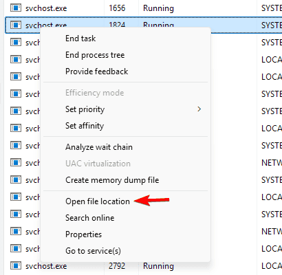- Оригинальный svchost.exe всегда располагается в C:\Windows\System32. Если файл находится в другой папке — сто́ит проверить систему на наличие вредоносного ПО.