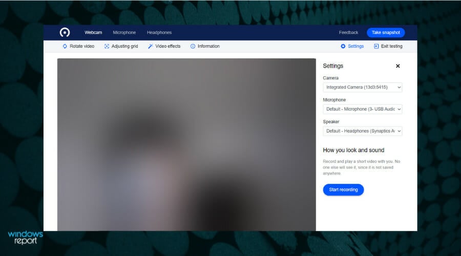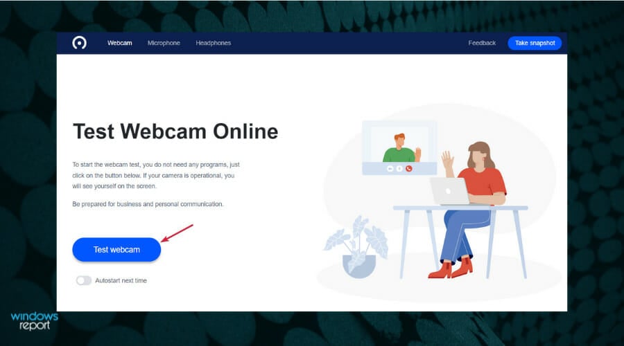 - Нажмите «Test webcam», разрешите доступ к камере и микрофону.