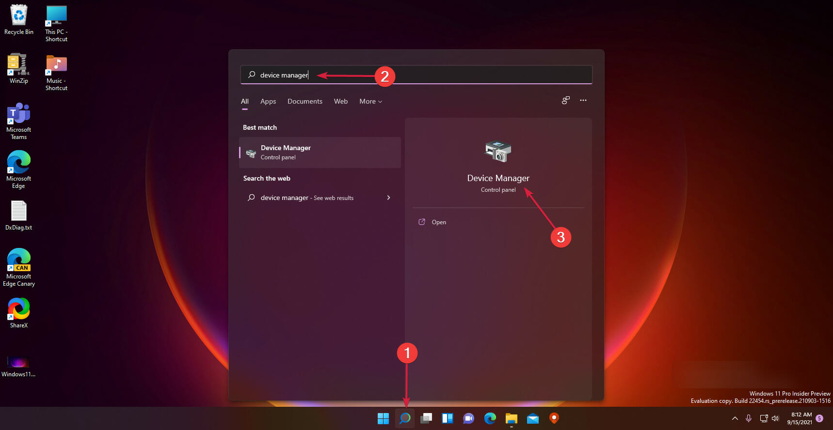 - Откройте «Пуск» → введите «Диспетчер устройств» и запустите его.