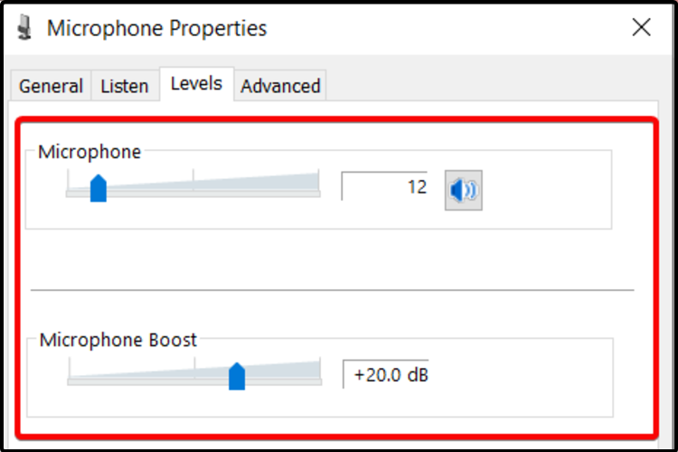 - Поднимите ползунок Усиления (Boost) микрофона.