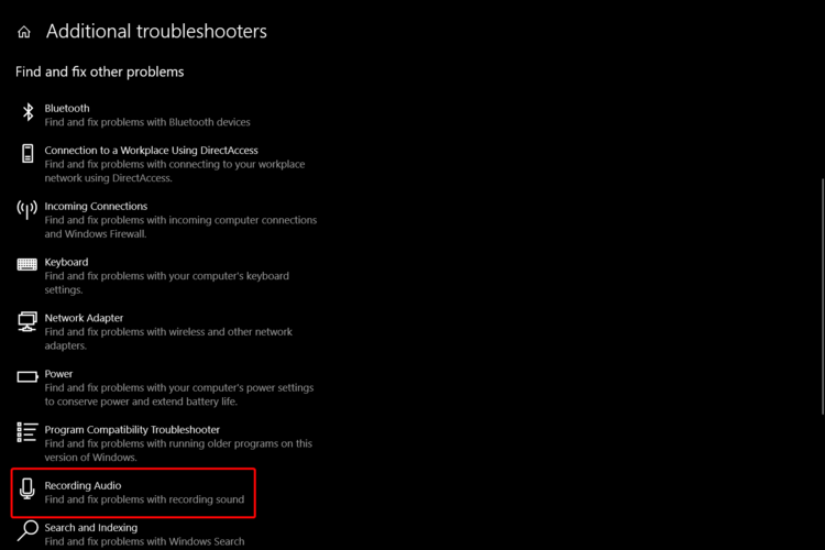 - В разделе Найти и устранить другие проблемы выберите Запись звука.