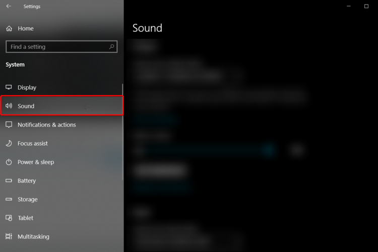 - Слева выберите Звук.