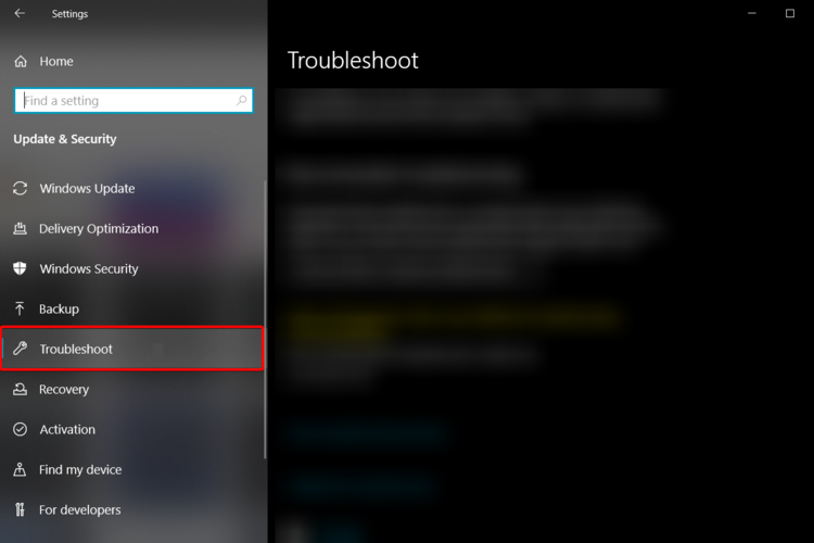 - Слева выберите Устранение неполадок.