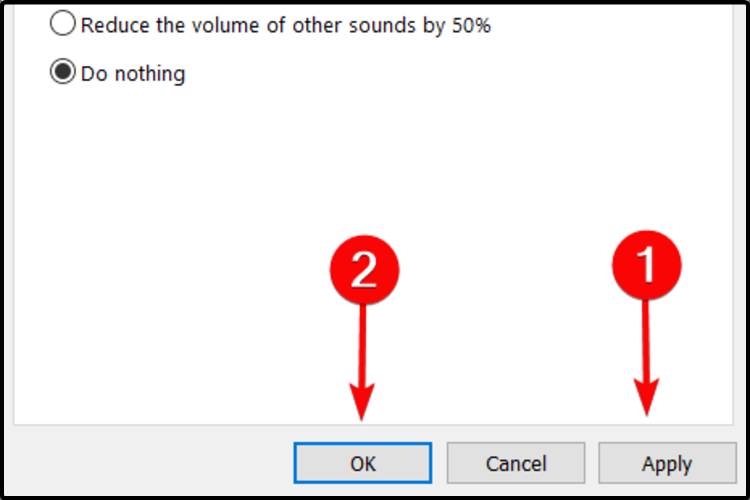 Windows иногда автоматически уменьшает громкость других звуков во время звонков. Отключение этой опции позволяет сохранить уровень микрофона.