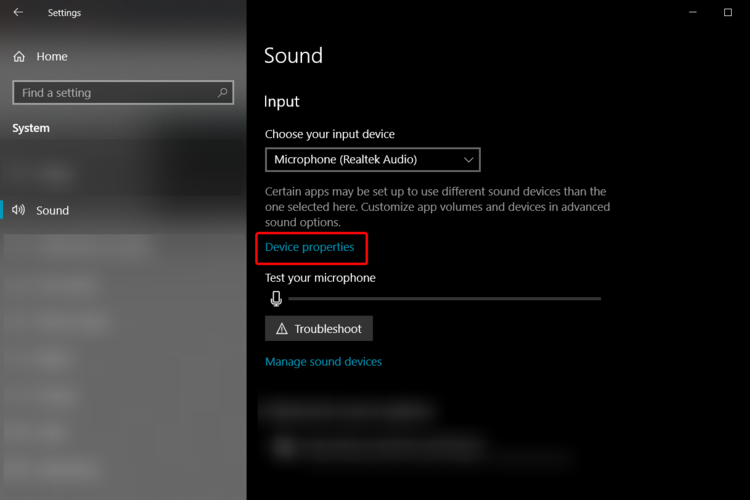 - Прокрутите вниз до раздела Ввод и нажмите Свойства устройства.