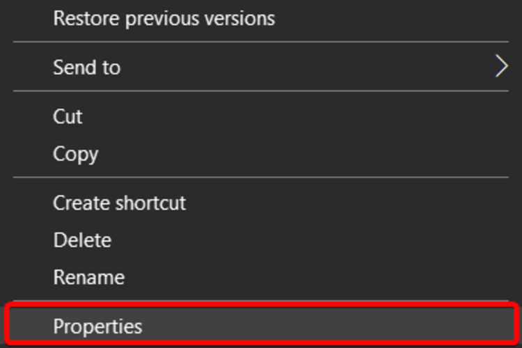 - Выберите Свойства.